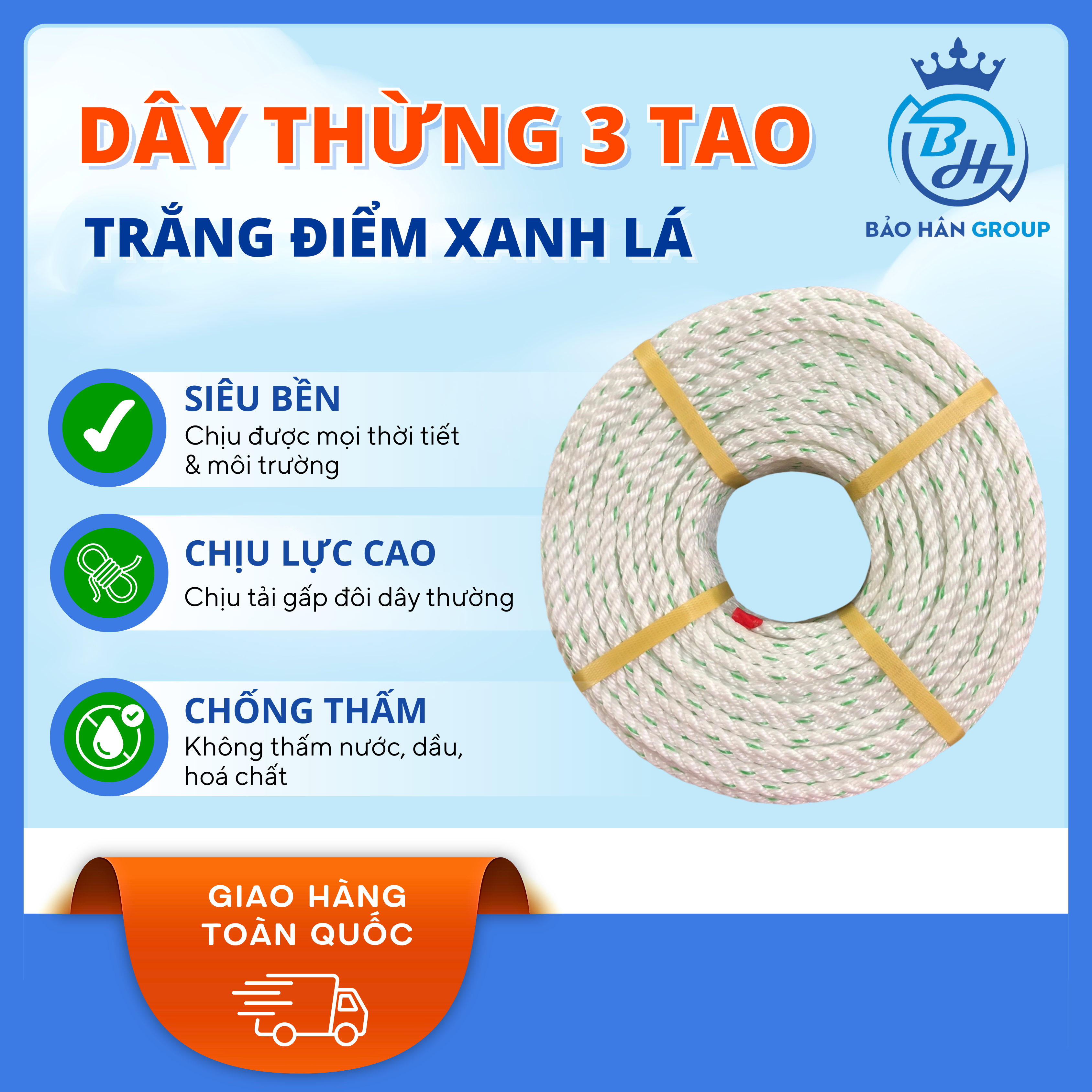 Dây thừng 3 Tao – Trắng Điểm Xanh Lá